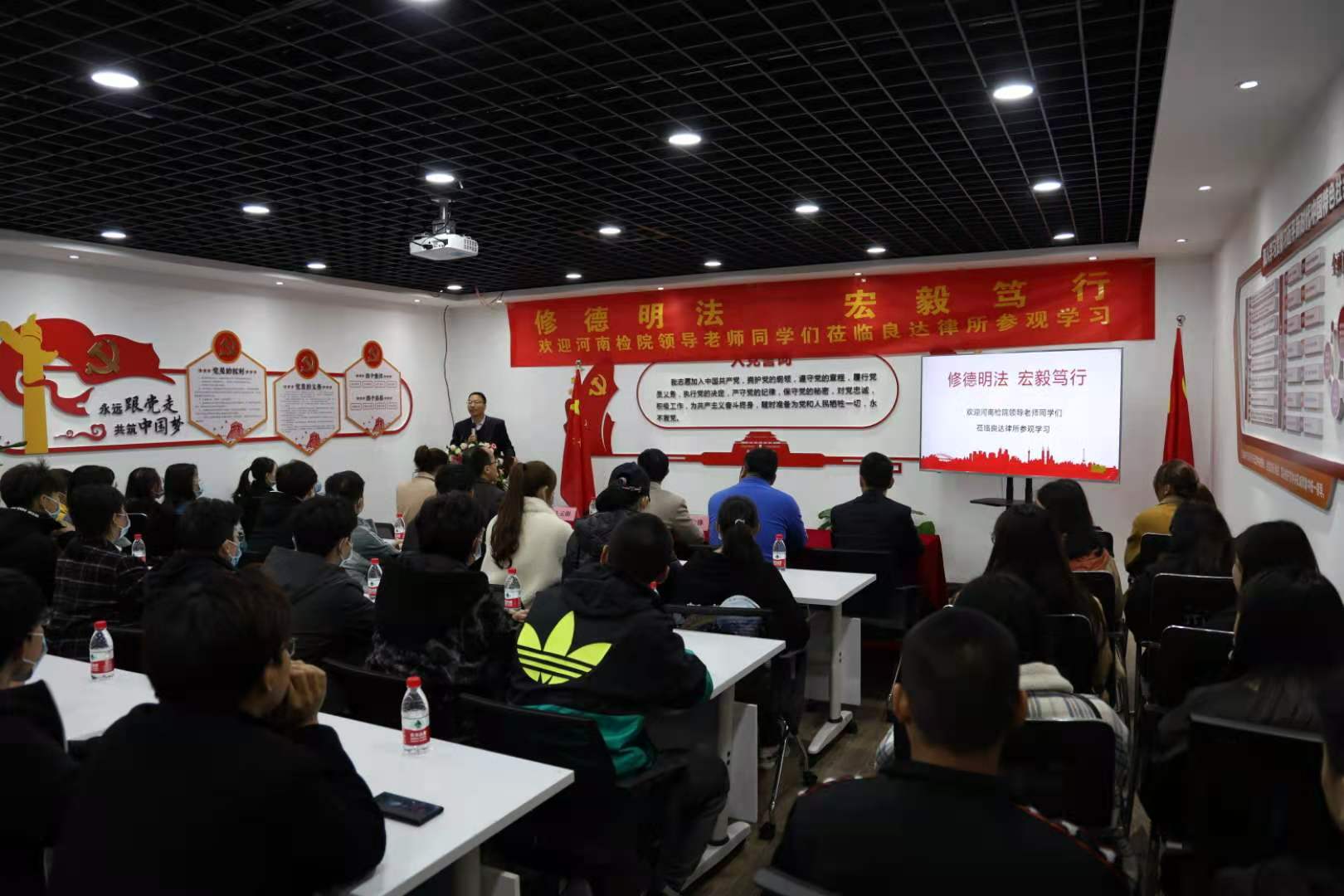 为引导2020级新生尽快培养对法律专业学习的浓厚兴趣,科学合理地规划自己的学业及职业,11月20日上午,由检察系主任郑志锋带队,检察系辅导员刘文龙、王云刚以及50名本专科学生代表前往河南良达律师事务所参观学习。