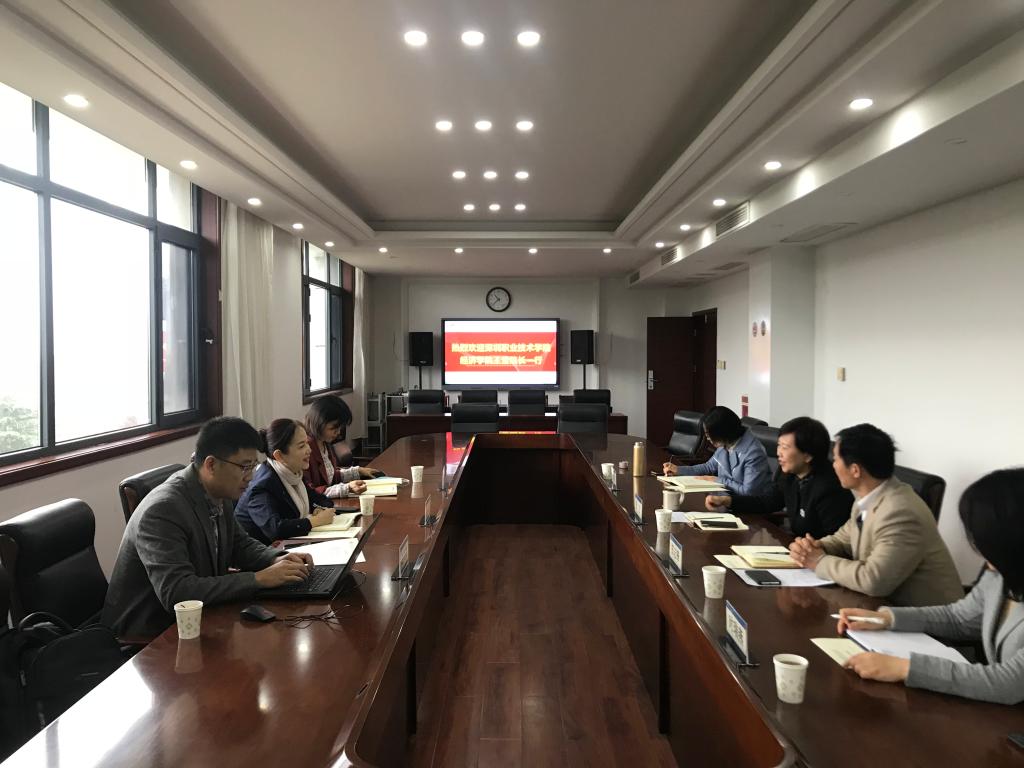 2020年11月23日上午,深圳职业技术学院经济学院王莹院长一行三人到KY官网就法律专业高职高专人才的培养进行交流座谈。KY官网副院长殷宏、检察系主任郑志锋、司法管理系主任姜海霞参加了交流座谈会。