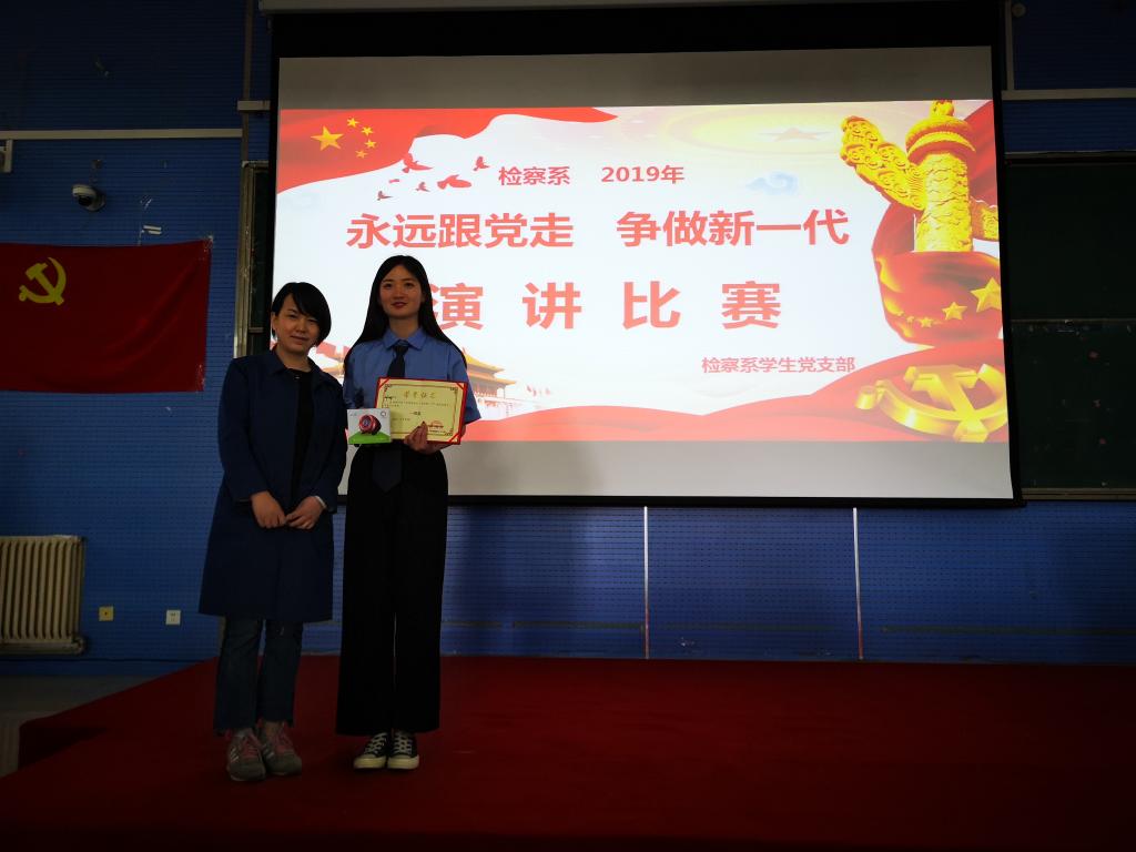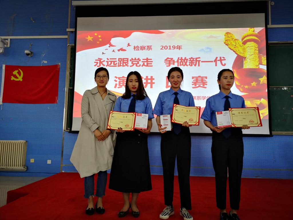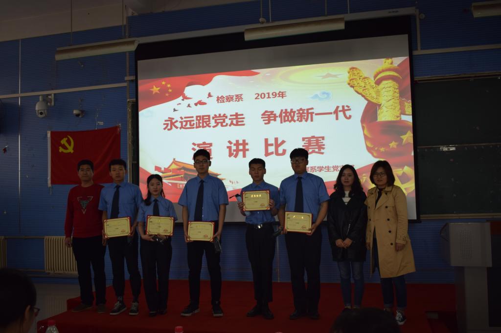 为深入学习贯彻习近平新时代中国特色社会主义思想和党的十九大精神,提高学生思想政治觉悟,4月26日,检察系学生党支部在2301教室举办“永远跟党走,争做新一代”主题演讲比赛决赛。检察系教务科科长时瑞燕、学生管理科科长张燕乐、全体辅导员以及2018级全体学生到场观看比赛。