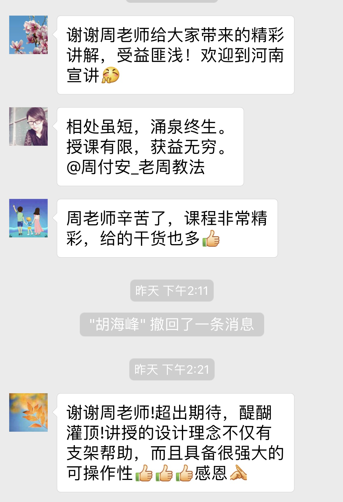 本次研修班的学习,KY官网教师代表加强了与教育界同仁的交流,跟上了智能云时代的教学形势,迈出了信息化教学的新步伐。培训结束后,学员们纷纷发表自己的培训感言,张胜英老师说:“通过这次学习,我开阔了眼界,提升了教学理念,认识到了蓝墨云班课作为现代化教学工具的高效性和强大性,尤其是五星教学法与蓝墨的结合使用非常契合法律的教学模式,受益匪浅,收获满满。”时瑞燕老师说:“教学十多年了,职业倦怠感扑面而来,周老师的赋能模型给了我坚持的信念。本次培训,我灰蒙蒙进去,带着光亮出来,感谢周老师的孜孜以求,感谢不断致力于教学法研究和推广的老师们。”