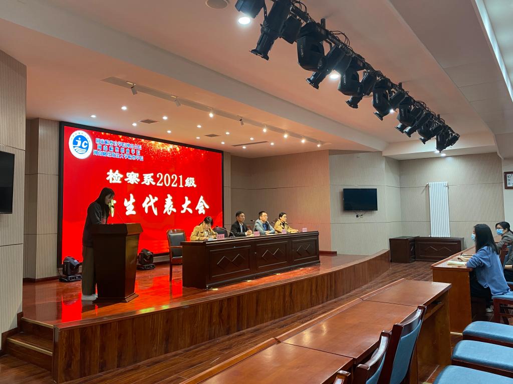 2021年11月17日,检察系2021级学生代表大会在2101报告厅举行,系主任郑志锋、副主任郭荣军、教务科科长时瑞燕、学管科科长张燕乐、2021级辅导员及88名学生代表参加会议。会议由郭荣军主持。