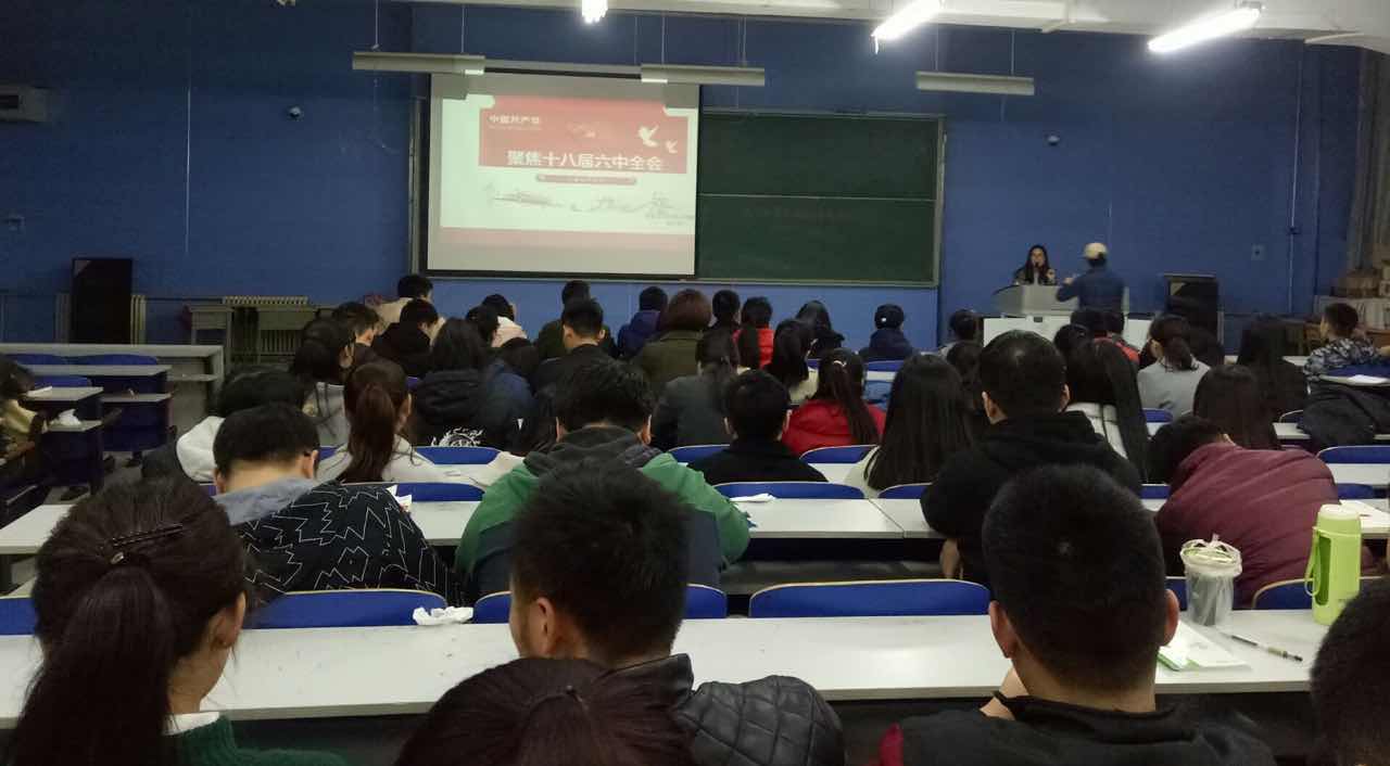 首先,杨老师从习近平总书记系列重要讲话精神入题,深入剖析了习近平总书记关于全面依法治国的的新思想、新观点、新论断、新要求;随后,简要讲解了《关于新形势下党内政治生活的若干准则》的基本精神,《中国共产党党内监督条例》的基本要求;接着,对党章党规的核心内容进行了讲解;最后,以“是什么、为什么、怎么办”三个层面为同学们重点讲述了以宪法为核心的中国特色社会主义法律体系。
